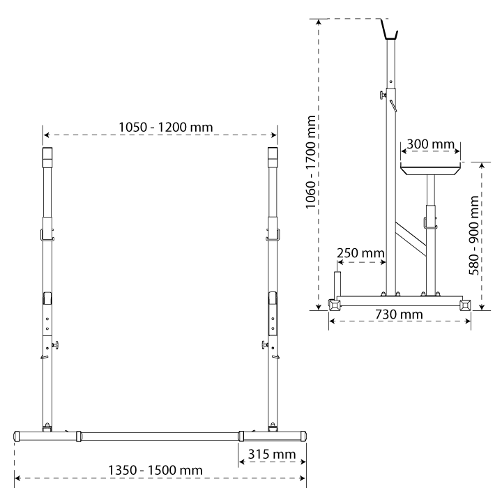 Сім рівнів регулювання на обох висотах стійки зі штангою дозволяють налаштувати обладнання відповідно до вашого росту та вправ, які ви збираєтеся виконувати. Стійки мають ідеальну висоту для жиму лежачи.