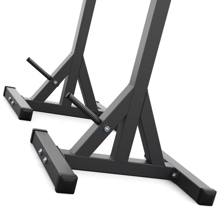 Наші стійки є справді must-have у кожному тренажерному залі, професійному та домашньому. Масивний, додатково посилений каркас трибун гарантує їх повну стійкість. Основу ми обробили пластиковими накладками проти ковзання. Завдяки цьому обладнання буде стійко стояти на підлозі, а ніжки додатково захистять його від подряпин при переміщенні підставки. Ви можете використовувати штангу, розміщену біля основи, щоб відкласти вантажі, які зараз не використовуються. Це зробить ваше обладнання ще більш стабільним!