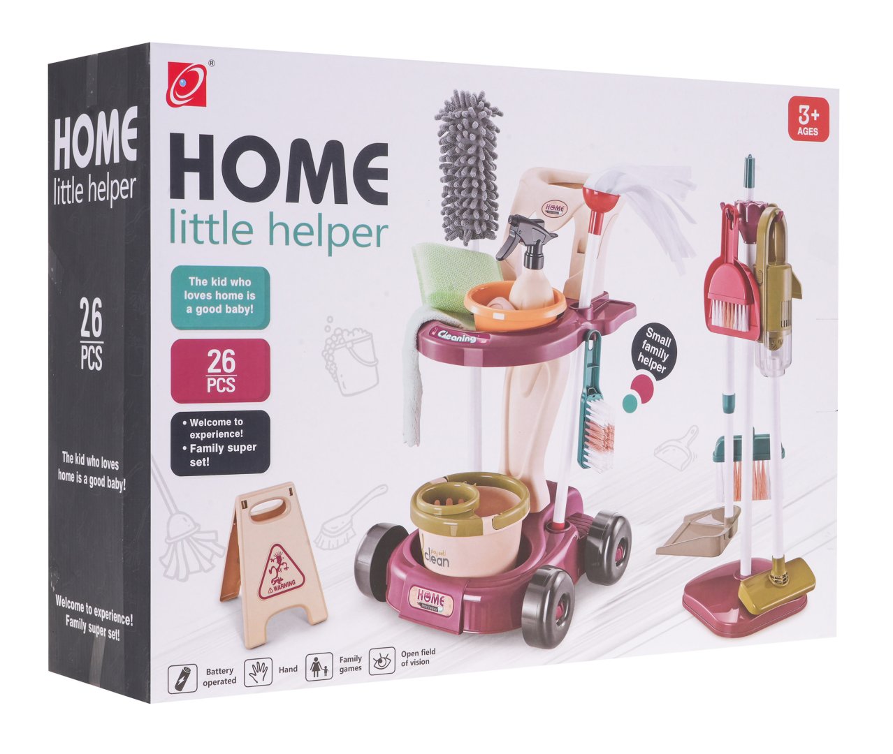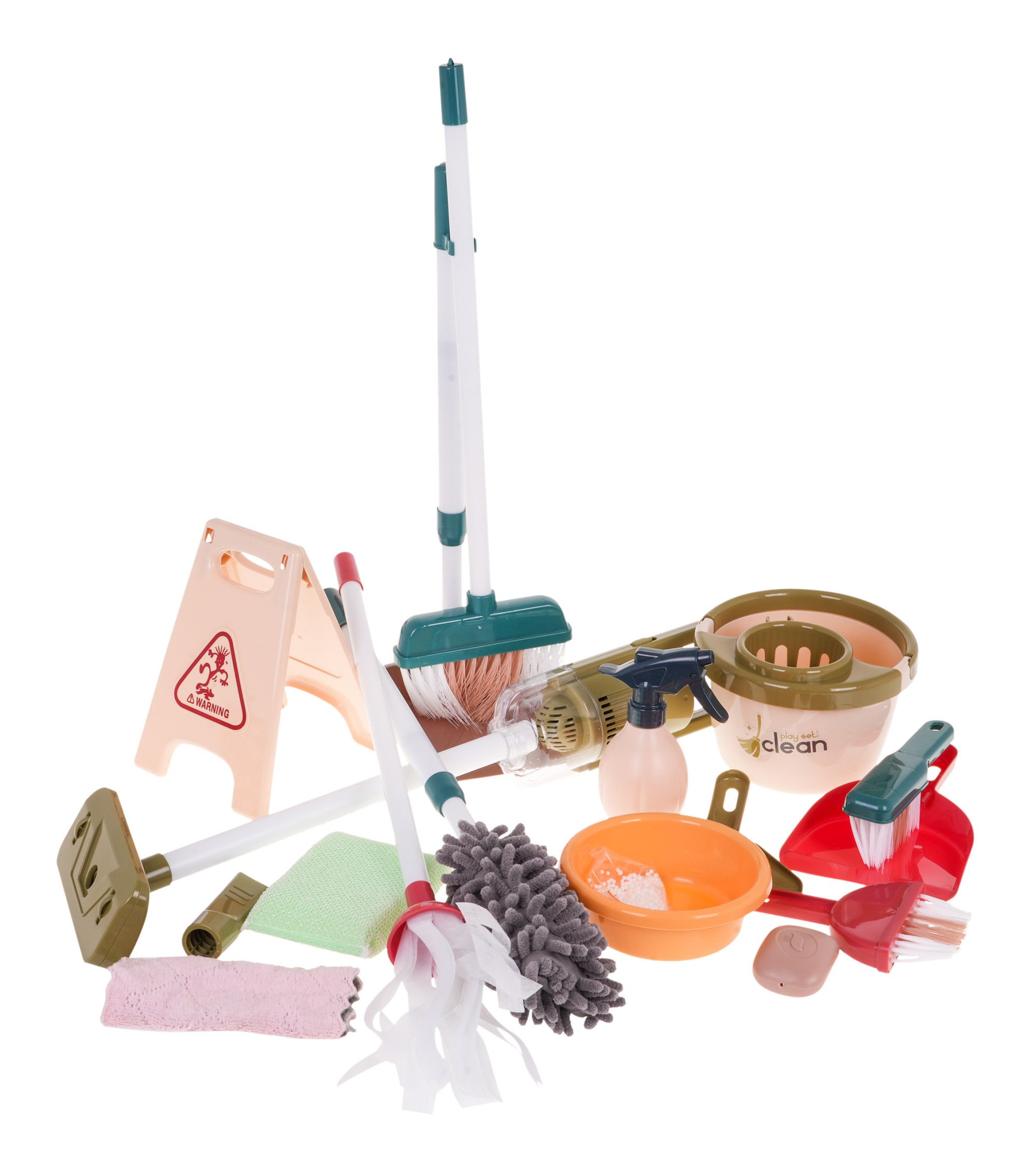 26-елементний набір для прибирання для дітей від 3 років. Багатофункціональний набір для прибирання з візком, вертикальним пилососом та комплектом аксесуарів — це чудова пропозиція для дітей від 3 років, які обожнюють наслідувати дорослих у повсякденних справах. Завдяки 26 елементам гра стає надзвичайно реалістичною та захопливою.