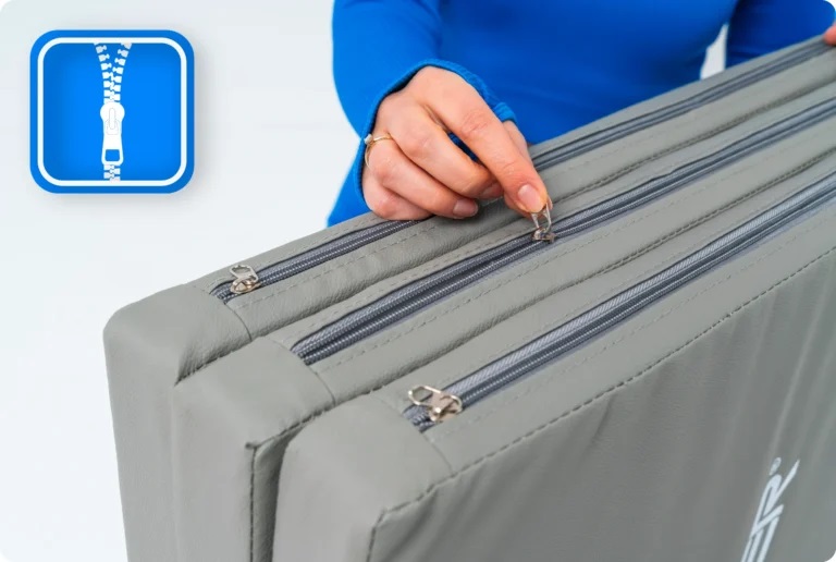 Матрац складається з трьох сегментів, що дозволяє швидко скласти його до компактного розміру 60 x 60 x 15 см. Це робить його компактним і зручним для транспортування.