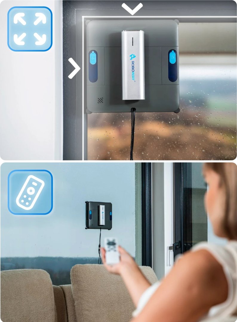 Робот для миття вікон ROBOWAY RW-5 PRO – ідеальний вибір для людей, які цінують сучасні та ефективні рішення для миття вікон. Оснащений передовими технологіями, інтелектуальними режимами роботи та інтуїтивно зрозумілим керуванням, він гарантує ідеальні результати за короткий час, без будь-яких додаткових зусиль. Такі функції, як система ДБЖ, забезпечують безперервну роботу навіть під час відключення електроенергії, а дистанційне керування робить використання простим та зручним.