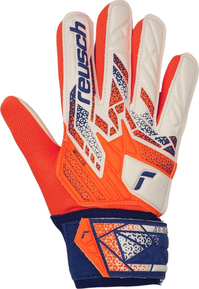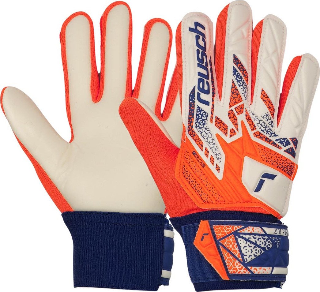 Дитячі воротарські рукавички Reusch Attrakt Starter Solid Junior у біло-помаранчевому дизайні — це модель, створена спеціально для початківців. Вони поєднують у собі зносостійкість і функціональність, що дозволяє юним воротарям впевнено діяти на полі з перших тренувань. Завдяки застосуванню піни Reusch Solid із синтетичним латексом, рукавички забезпечують надійне зчеплення з м’ячем та стійкість до зношування.