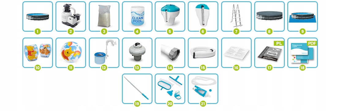 Басейн каркасний 21в1 Intex 26330 549 × 132 см — це великий сімейний басейн серії Prism Frame, який забезпечує простір, безпеку та повний набір аксесуарів для комфортного відпочинку. У комплекті є все необхідне для запуску, догляду та розваг, включно з системою фільтрації, хімією, набором для прибирання та дитячими аксесуарами.