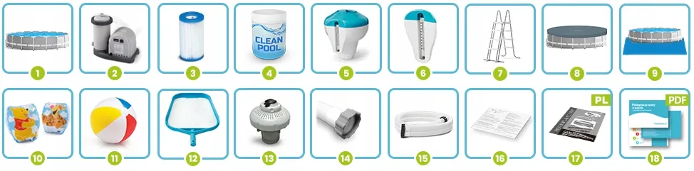 Басейн каркасний 18в1 Intex 26756 610 × 132 см — це великий круглий басейн серії Prism Frame, який вміщує понад 32 600 літрів води. У комплекті йде повний набір аксесуарів для догляду та розваг.